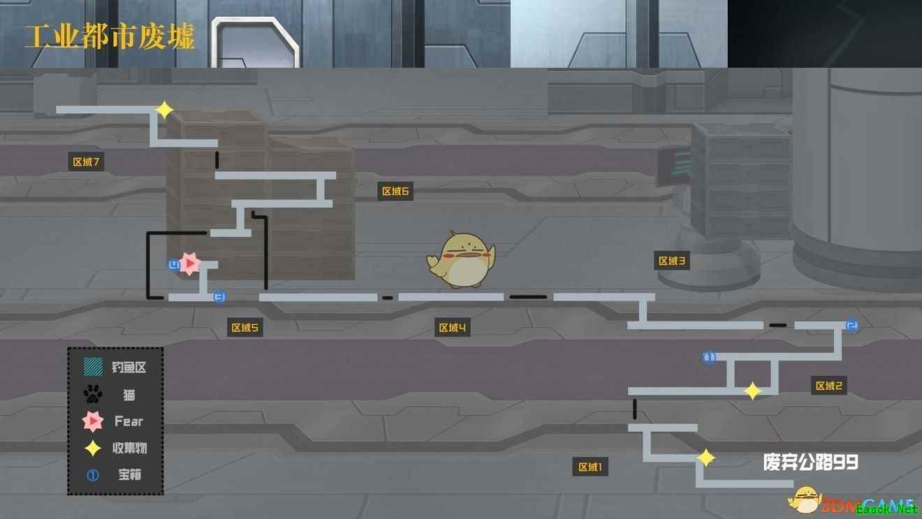 1、 前往废道公路99地图左上方,进入工业都市废墟区域A