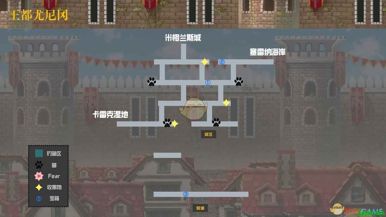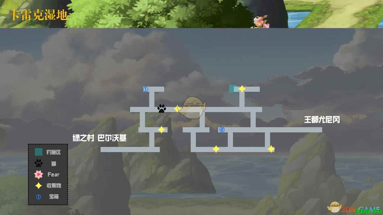 2、 地图一路向右通过卡雷克湿地前往王都尤尼冈