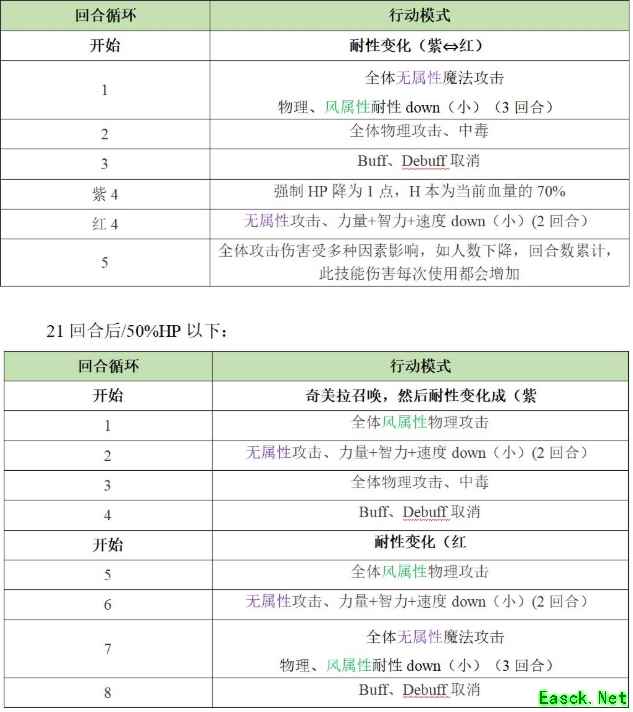 耐性会在物理和魔法之间切换,一开始是魔法耐性,HP下降或者经过固定回合后,行动也会发生变化。