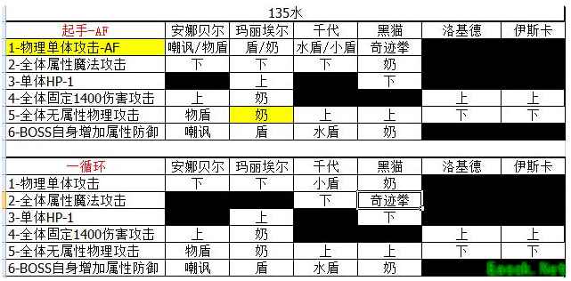 下面放上技能循环表及战斗视频↓↓起手完成后反复一循环 即可