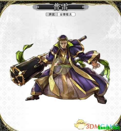 以博爱为宗旨的神官团中的一员。拥有强健的身躯与健美的肌肉,激烈的战斗英姿让他得到了“如沙拉曼达般炙热的男人”的称号。不过,由于他完全遵从于自己的信仰与热情,所以基本上不会照顾他人的感受。