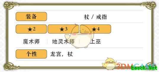 她是希拉的贴身侍女。对曾经救过自己的希拉怀有感激之情,自己也想成为希拉那样的人。不过她有些迟钝,每次遇到事情都会不小心犯错。很喜欢泡在水里,只要看到清澈的水畔,就会本能地想要泡一泡。