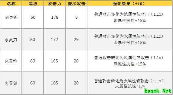 四大精灵武器在通关44章后获得,升级材料从巨魔城堡、托托乐园VH和四大元素精灵获取。具体为: