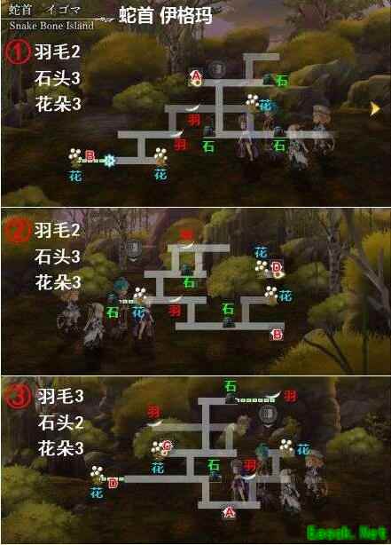 全图羽毛一共有21个,石头22个,花朵22个,下图中是三种物品位置图,大家可以对照位置找三种物品!