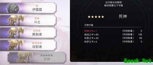 2、死神之书是伊露露升星时候所需的材料,此外还需要消耗大量的细语之书、祈愿之书以及咏梦之书。