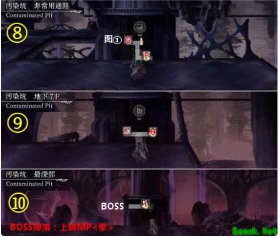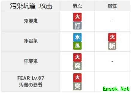 BOSS:饿邪鬼,锁血50%,无弱耐,3个手下(分别弱斩突打)击破前全攻击无效,手下击破后会重新召唤手下。胜利后获得上级MP<拳>