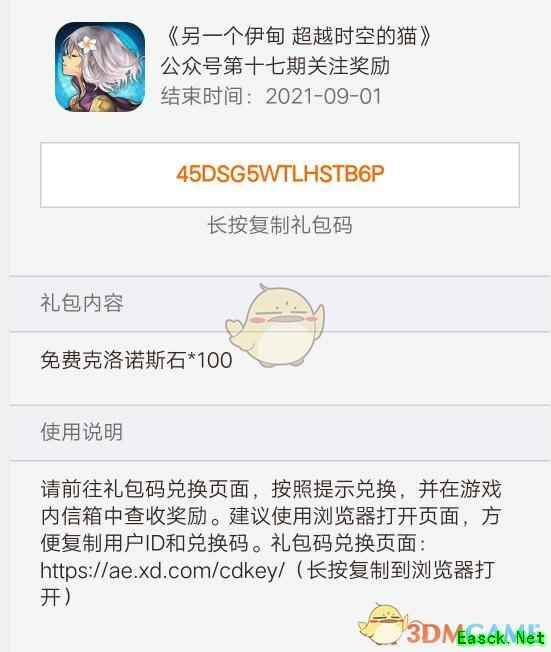 以上就是小编整理的关于《另一个伊甸:超越时空的猫》七月礼包兑换码的全部内容,更多游戏攻略请持续关注手游网!