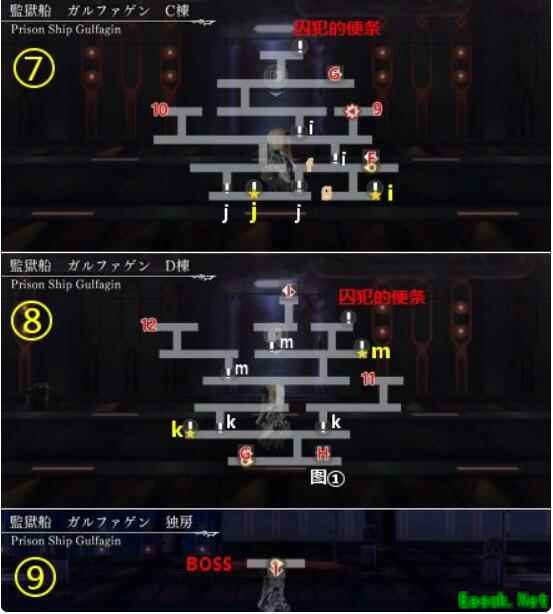 宝箱:1~12,其中4是看守的便条(密码),6是囚犯的便条(密码)