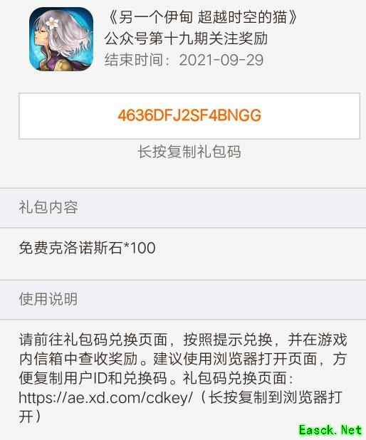 以上就是小编整理的关于《另一个伊甸:超越时空的猫》微信公众号19期礼包兑换码的全部内容,更多游戏攻略请持续关注手游网!