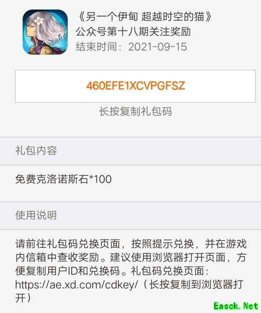 以上就是小编整理的关于《另一个伊甸:超越时空的猫》微信公众号18期礼包兑换码的全部内容,更多游戏攻略请持续关注手游网!