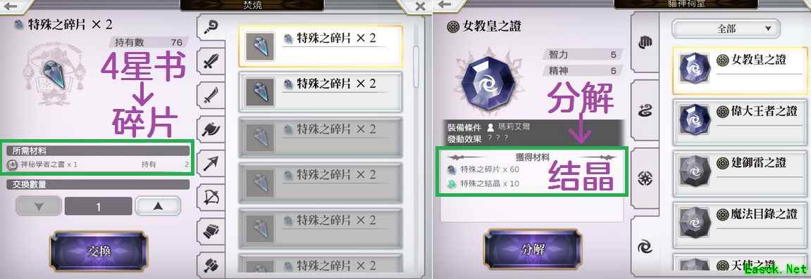 ②分解已活化的VC灵晶×1 → 特殊碎片×60 + 特殊结晶×10