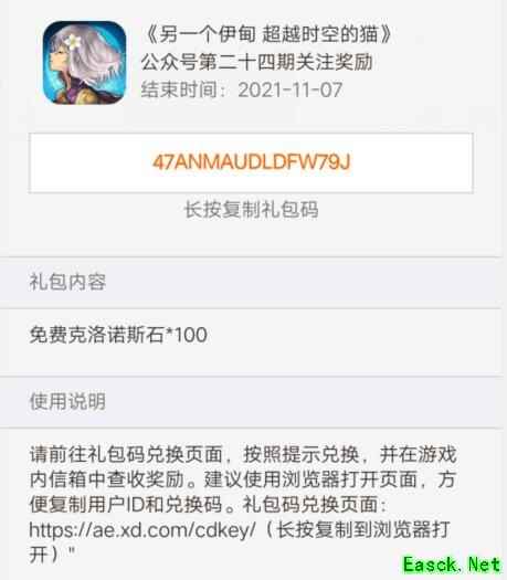以上就是小编整理的关于《另一个伊甸:超越时空的猫》微信公众号24期礼包兑换码的全部内容,更多游戏攻略请持续关注手游网!