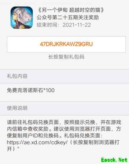 以上就是小编整理的关于《另一个伊甸:超越时空的猫》微信公众号25期礼包兑换码的全部内容,更多游戏攻略请持续关注手游网!