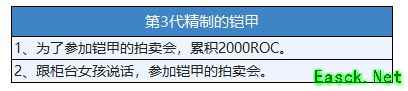 1、在拍卖会柜台旁接受支线任务“第3代精制的铠甲”。