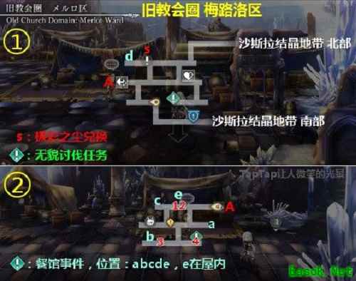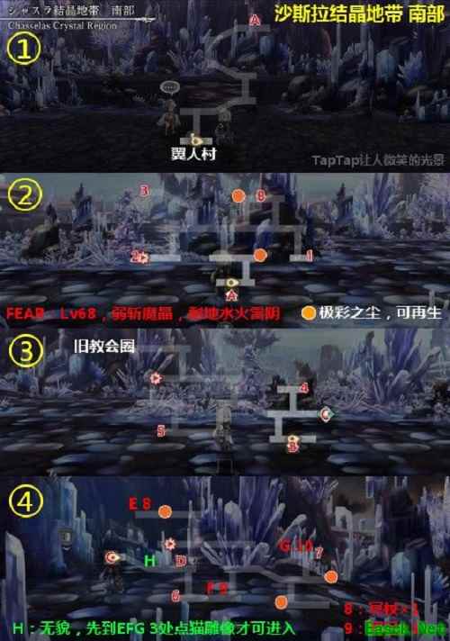 ②隐王无貌(无脸):在旧教会圈点绿色叹号→去沙斯拉结晶地带南部最右边地图自动触发剧情→点3个猫雕像(地图EFG处)→进入D处打无貌。