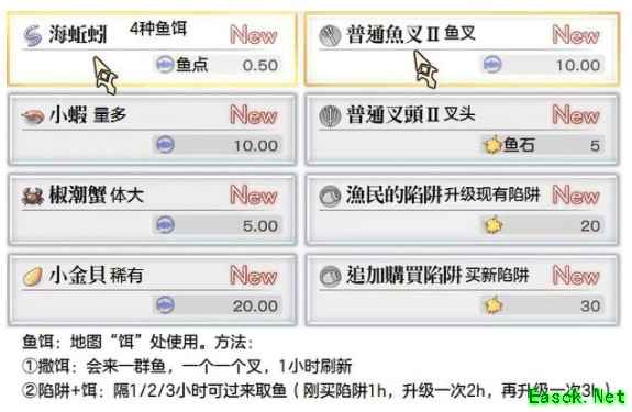 ①奇拉海滩左边绿爷爷处,可用旧鱼石兑换新鱼石,反之亦然,前提是用鱼石买的钓具都已买完。