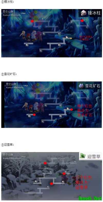↑↑上图为强化1-10所需全部材料和材料地址,需要注意的是昆仑山脉要从雪村里面进去,沙蒂拉体育场从次元夹缝的记忆之殿进去。
