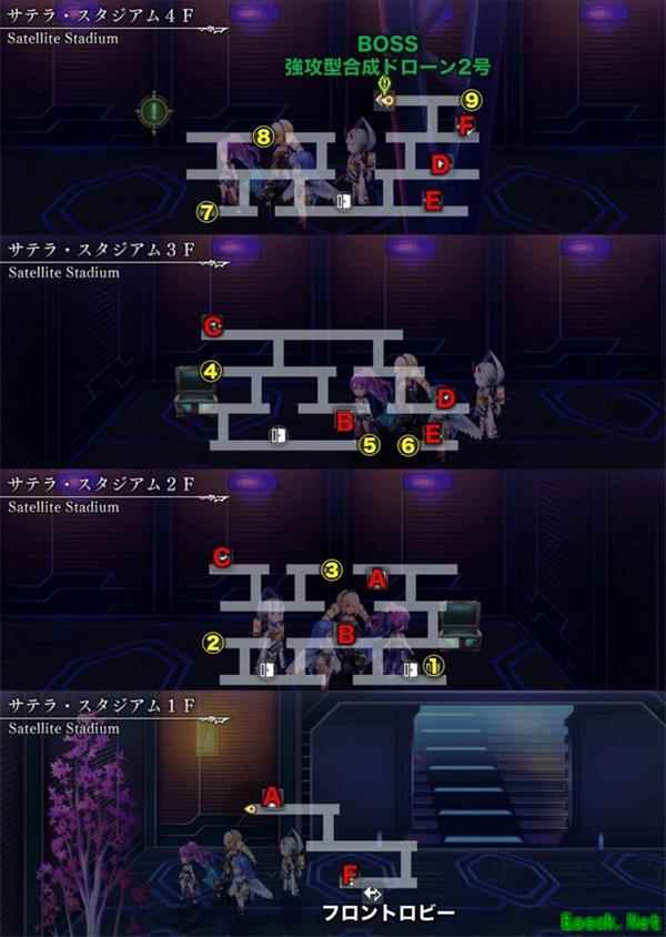 3、返回入口,从右上方电梯进入区域(右),然后在地图最上部触发剧情,通过员工通道进入“莎蒂拉体育场1F”。