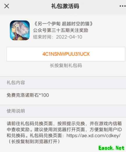 以上就是小编整理的关于《另一个伊甸:超越时空的猫》微信公众号35期礼包兑换码的全部内容,更多游戏攻略请持续关注手游网!