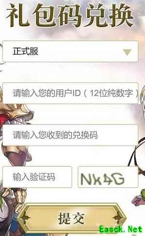 2、进入官网之后,我们需要在兑换界面输入用户ID、兑换码和验证码这些内容,然后点击提交;