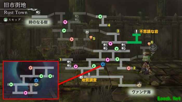 1、在海洋地图右上方图标所示的码头靠岸,到达“旧市区”。