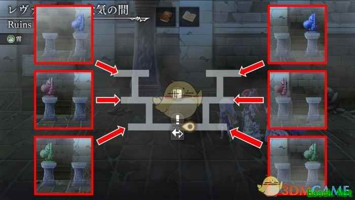 2、谜题解法:将左下的绿色士兵移到左边台座;将正右的红色士兵移到左边台座,将左上和右上的蓝色士兵都移到右边台座,即可打开正中央的大门