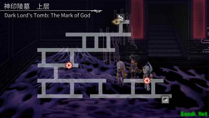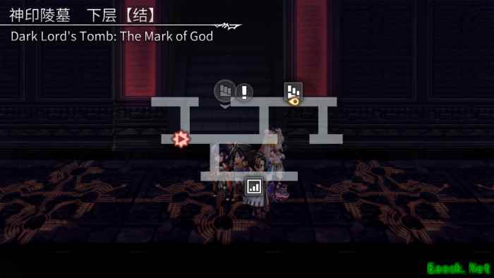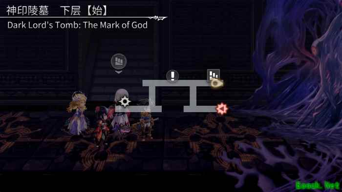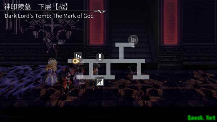 ※本层魔眼交叉处为陷阱。此处事件遇敌,并触发陵墓的诅咒,在此次战斗中为队友带来随机负面状态,请小心规避两处魔眼眼珠方向相交叉的位置。行走到一处魔眼面前转弯不会触发陷阱遇敌事件。