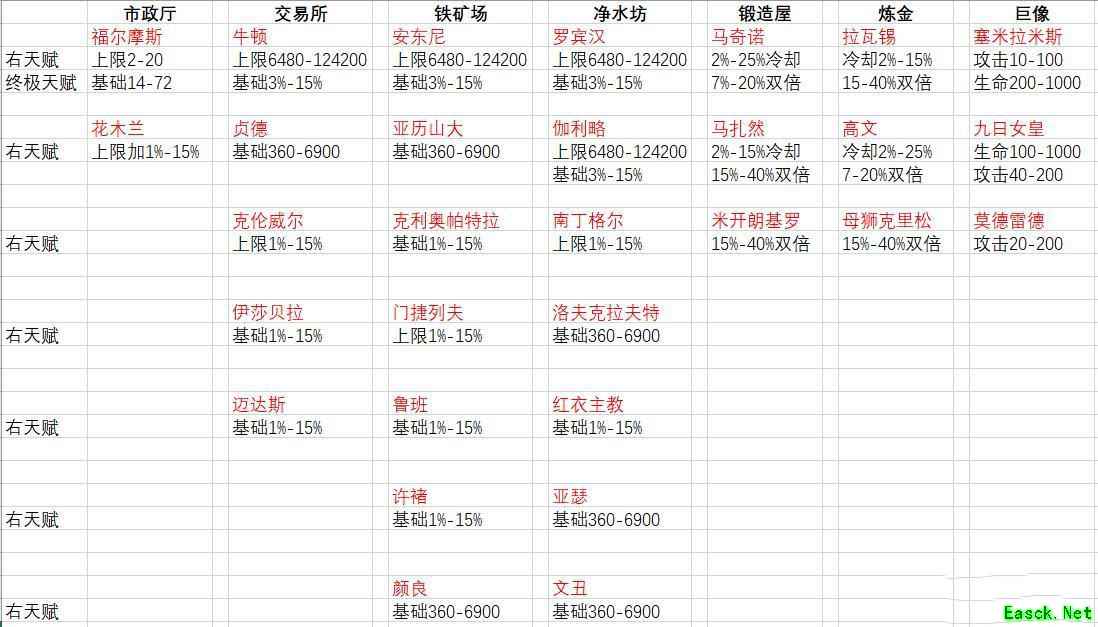 交易所、铁矿场、净水坊都有许多加成主角,其他加成主角要么是没有基础加成,要么是天赋升级难度较高。所以推荐以上主角,免得萌新浪费前期较缺的天赋升级材料。附带资源主角列表: