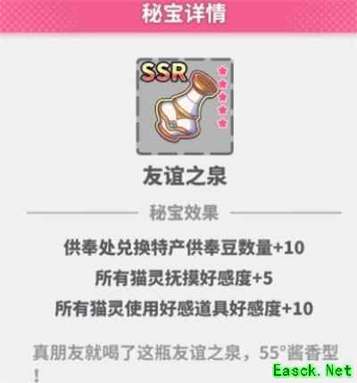 作为一个养成游戏,增加猫灵好感度可以说是这个游戏的重要目标之一,这个秘宝可以让好感度加得更多。
