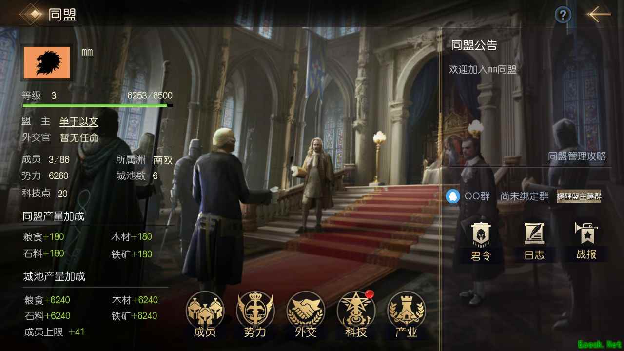 2、享受同盟科技带来的资源产量加成,这个幅度与同盟科技有关,建议选择比较活跃的同盟,选择同盟时可以看见加成量。