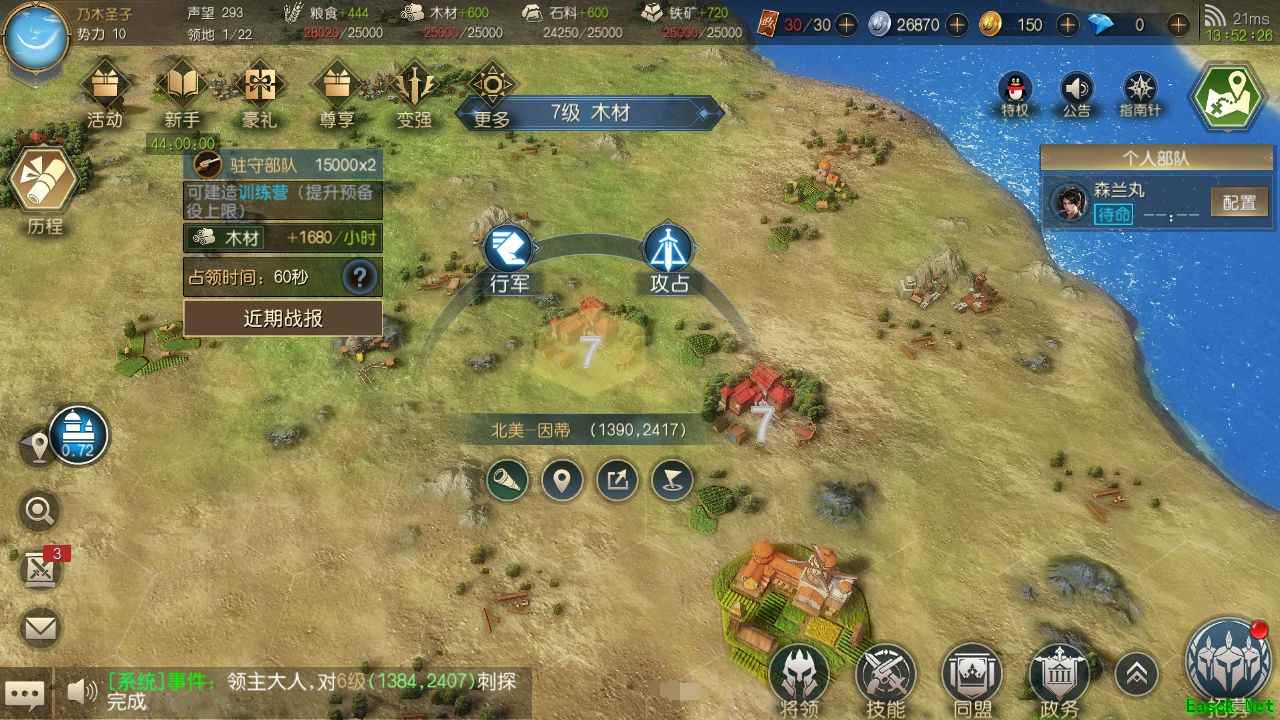 当我们考虑开荒七级地的时候,此时我们已经不是一名新手玩家了,而且因为兵营等级的提升,以及对应势力崛起城建等级的提高,我们的开荒变得没有那么难了,但七级地毕竟有着15000*2的守军数量,所以我们也不能掉以轻心,本次我就给大家带来七级地的开荒攻略。