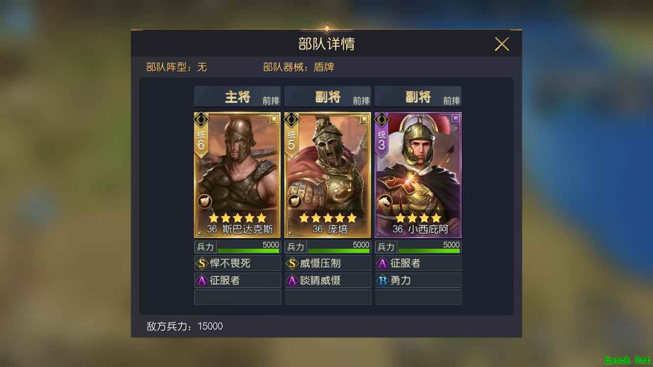 七级土地除了最为常规的守军数量上的提升、将领等级的提升之外,也出现了五星将领的配置,另外将领的等级也都提升到了36级。同时,将领携带的技能等级以S和A级为主,技能的强度大大提高,但好消息是虽然技能的品质提高了,但好在技能的等级没有太大变化,还是5+5的配置,技能虽然控制变多了,但是还是难以通过队内的配合打出combo,也就是守军大概率还都是各自为战的模式。