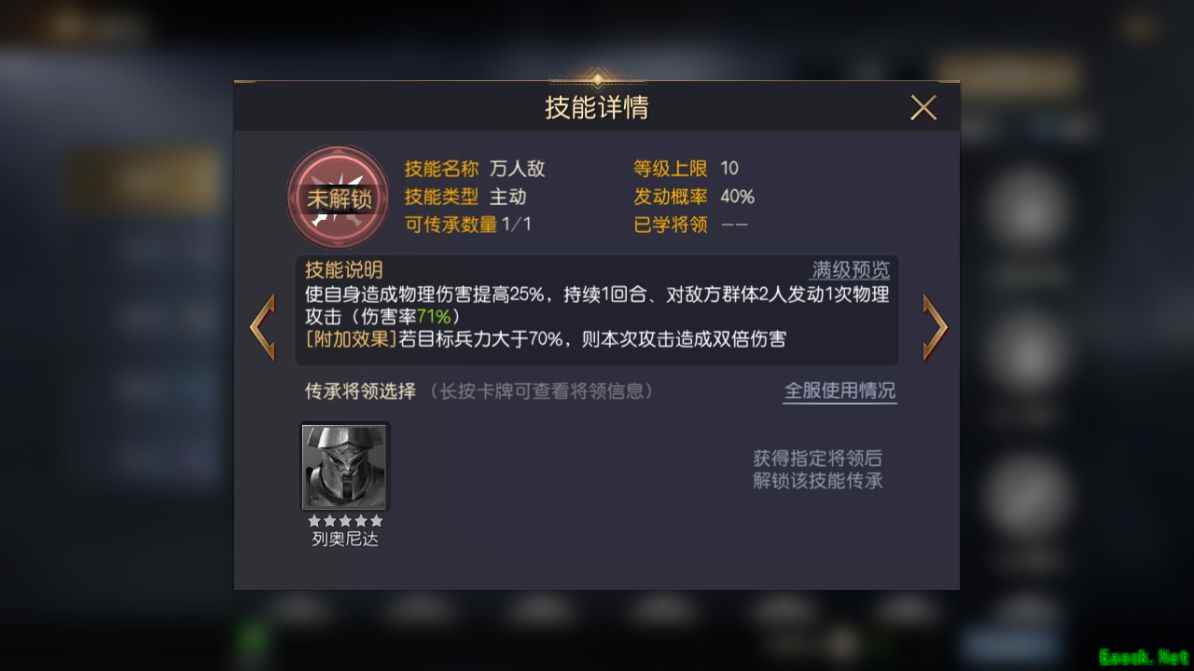 织田信长有一个特点是除了力量属性高之外,其谋略属性也相对较高,这容易对小伙伴们产生一定的误导作用,使其向力量和谋略双方面发展。这里推荐大家在选择二技能和三技能的时候选择能够提高物理输出的技能,例如【万人敌】【霸王扛鼎】等。【万人敌】可以对敌方2人发动1次物理攻击(初始伤害率71%,满级125%),且在目标兵力大于70%时,此次攻击造成2倍伤害。【霸王扛鼎】则能够以100%的概率大幅度提升织田信长的力量属性(初始32点,满级50点),。这两个技能效果虽然不同,但最终的目的都是一致的,即大幅度提升织田信长的物理输出能力。如果考虑将织田信长打造成速攻队的话,则推荐携带【破敌】和【突袭】,尽量在前面几个回合打出爆发,快速解决战斗。