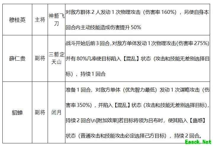 在搭配阵容时,推荐“薛仁贵”+“貂蝉”为副将的组合,两个副将在增加队伍输出的同时还能提供不俗的混乱控制效果。