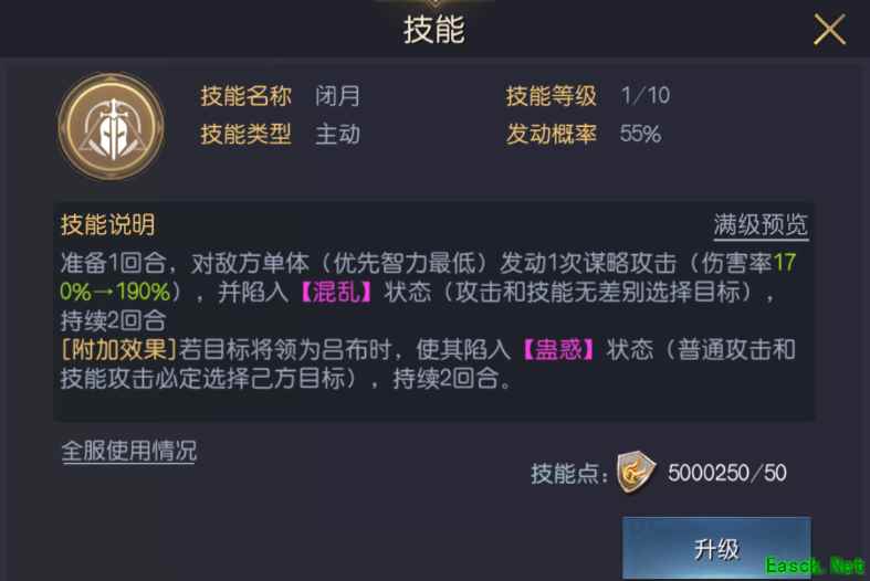 专属技能【闭月】
