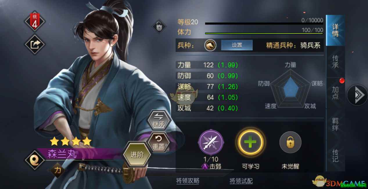 但在《征服与霸业》中无论是几星将,只要点了传承即可解锁并使用技能,S级技能也一样,只需后续用四星将提升等级上限即可,这也是《征服与霸业》独有的特点之一。