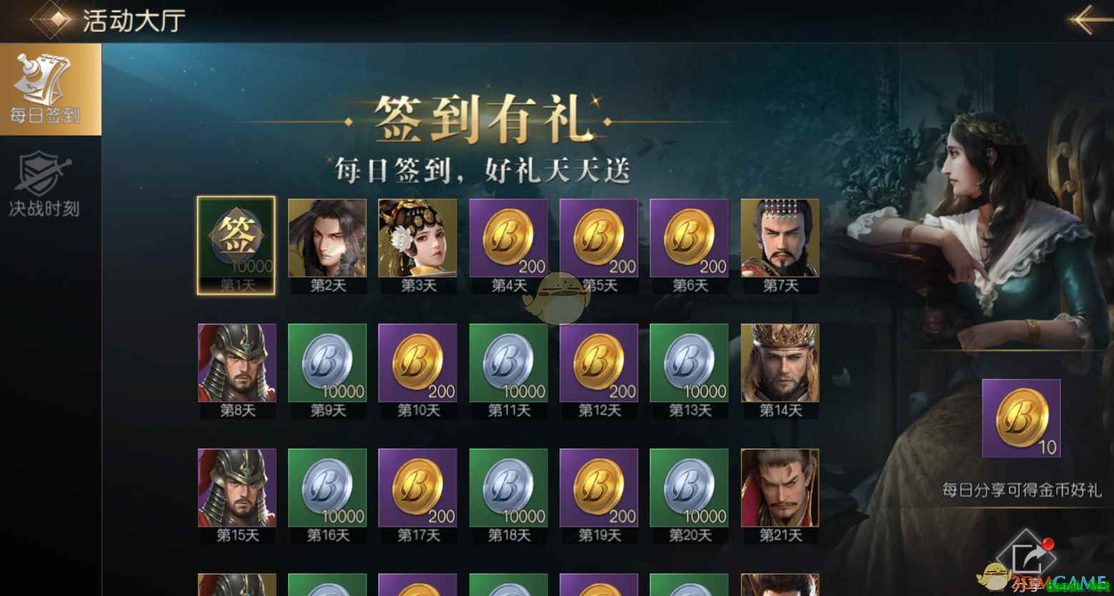 之后通过各类活动与系统福利所赠送的武将以及金币,足以让我们抽到足够数量的五星将领。(如何配将这里就不再赘述了)