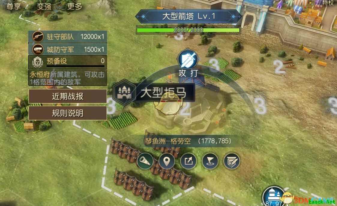 《征服与霸业》是一个典型的地格占领SLG,敌对联盟想要侵攻,就必须一块一块地啃下连接地块。除了在敌人的必经之路上建造拒马和箭塔以外,还可以通过卡地等方法暂时阻止敌人的前进步伐。