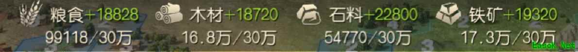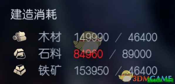 无论是建筑需求还是军备需求,石料的数量都是木材和铁矿的1.5到2倍。因为前期建筑升级速度非常快,次数又十分频繁,石料储备很快就会捉襟见肘,卡得你寸步难行。