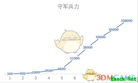 这是目前游戏中各个等级地块的守军数量详情。可以看到,6级地块是个非常明显的分水岭,其守军兵力会瞬间暴涨到5级地的3倍以上,且之后每级的增长量都超过了10000以上。相反的,我们玩家的士兵数量却会在将领达到30级时,遭遇觉醒等级的瓶颈,在一段时间内都无法突破9000大关。