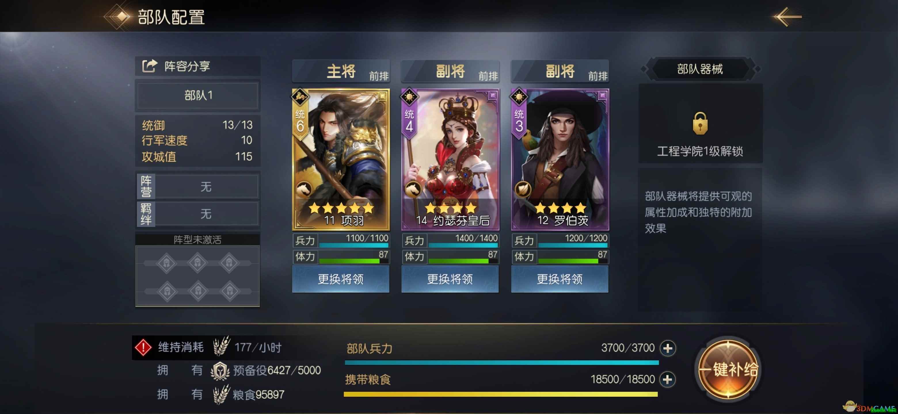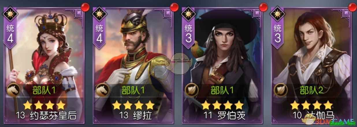 此时继续保持主力队打4、3级地、别动队打2级地的节奏,一路平推升级。直到解锁别动队的第3个将领位,此时把打3级地任务交给别动队,为主力队节省体力。