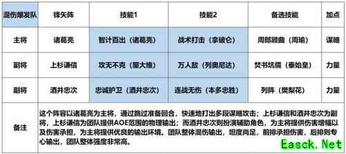 以诸葛亮为主将有物理输出还有多段谋略攻击,副将提供AOE范围物理输出和辅助伤害承担效果,整体为诸葛亮提供更好的输出空间,整体强度非常高。