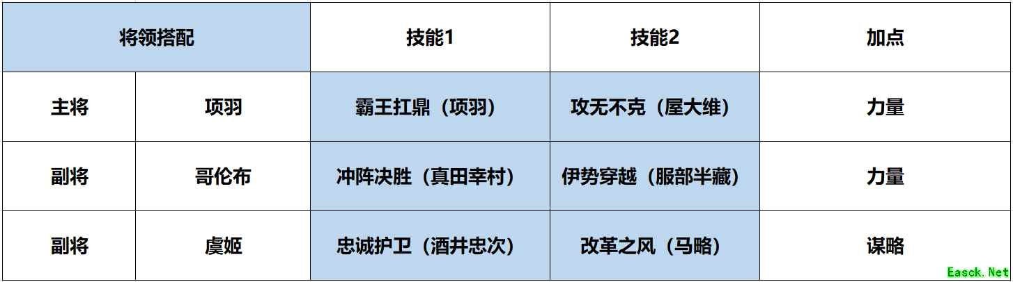 项羽作为一个高品质高力量的将领,前期十分强势。小伙伴们也可以试着搭配不同将领阵容以及技能,依据游戏实际情况应变组合。