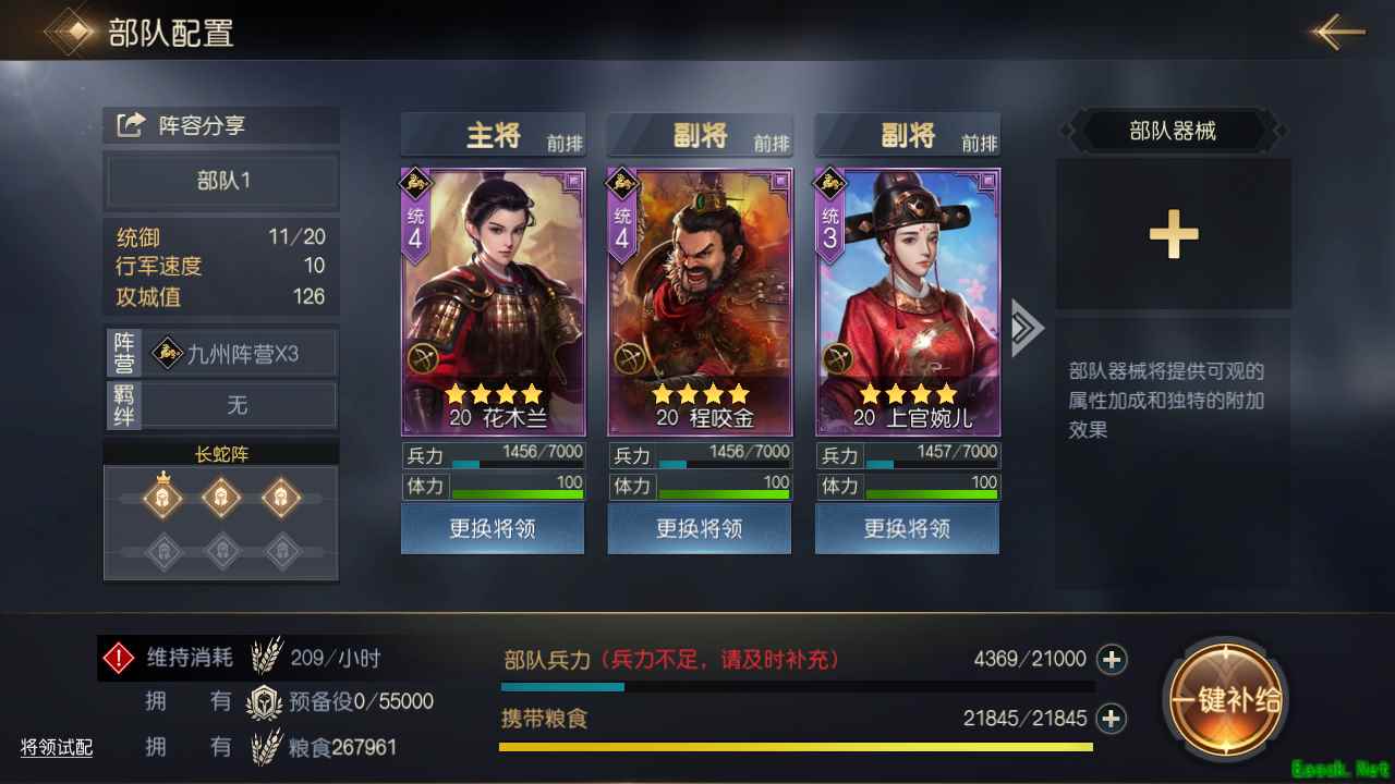 优势:这套将领组合拥有很高的物理输出能力,且因为各自的技能拥有相互配合的能力,所以爆发以及持续能力都尚可。同时,三人都适应弓兵兵种。