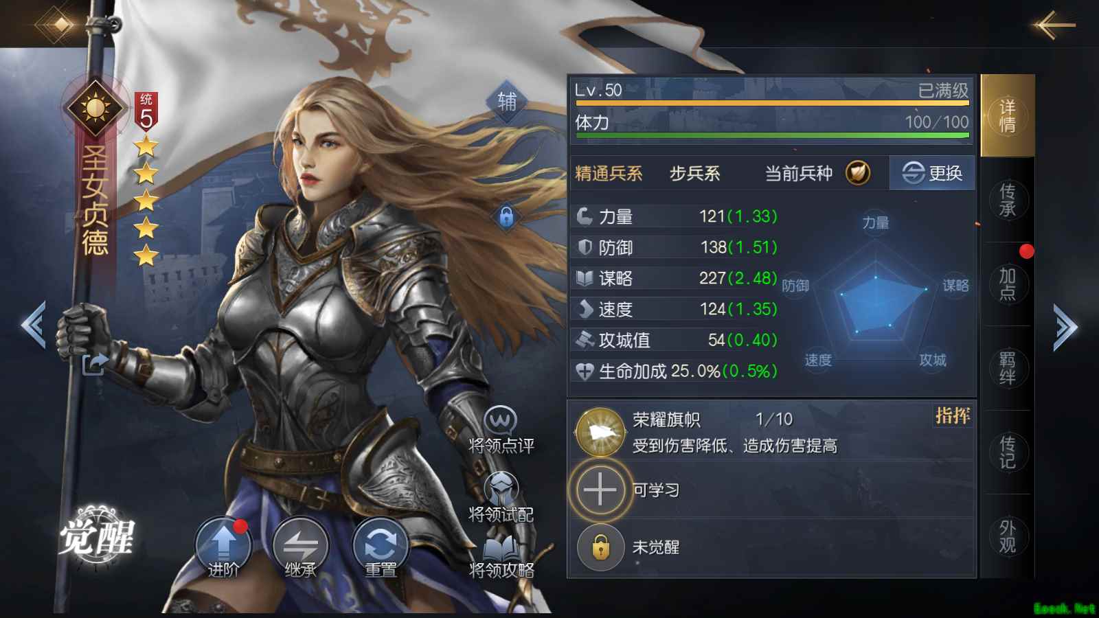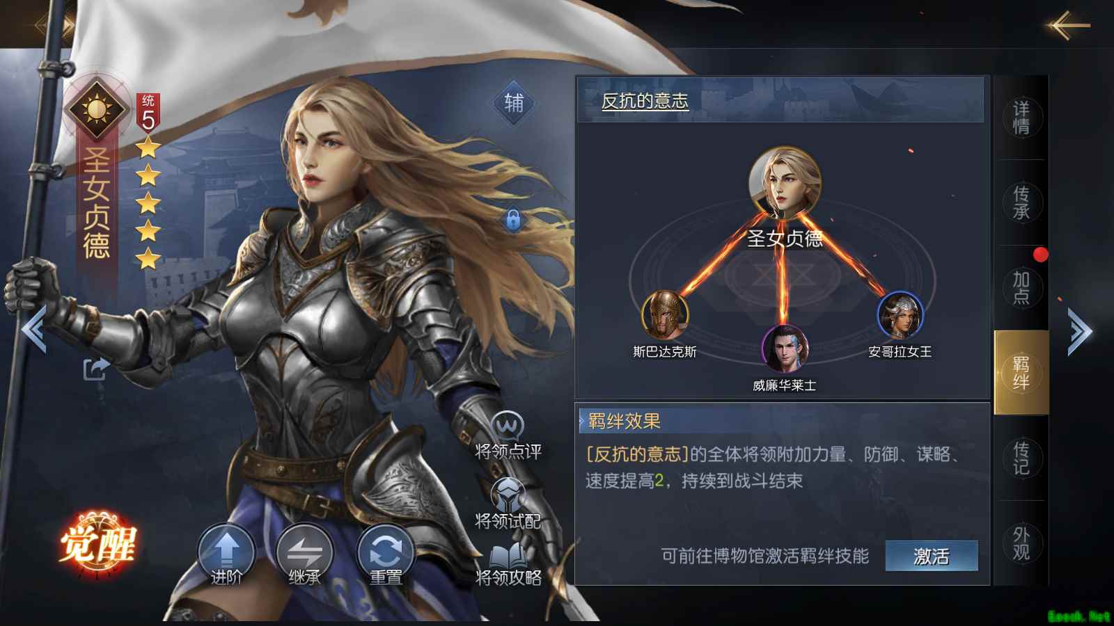 如果小伙伴们招募到相同将领,还可以进行将领进阶,消耗相同将领可进阶一星,从而获得额外的属性点,同时我们在满足觉醒条件后就能使你的将领觉醒,解锁第三个技能栏,拥有三个技能的将领战力会得到质的飞跃。