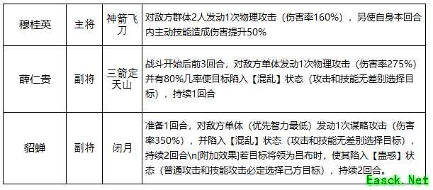 在搭配阵容时,推荐“薛仁贵”+“貂蝉”为副将的组合,两个副将在增加队伍输出的同时还能提供不俗的混乱控制效果。