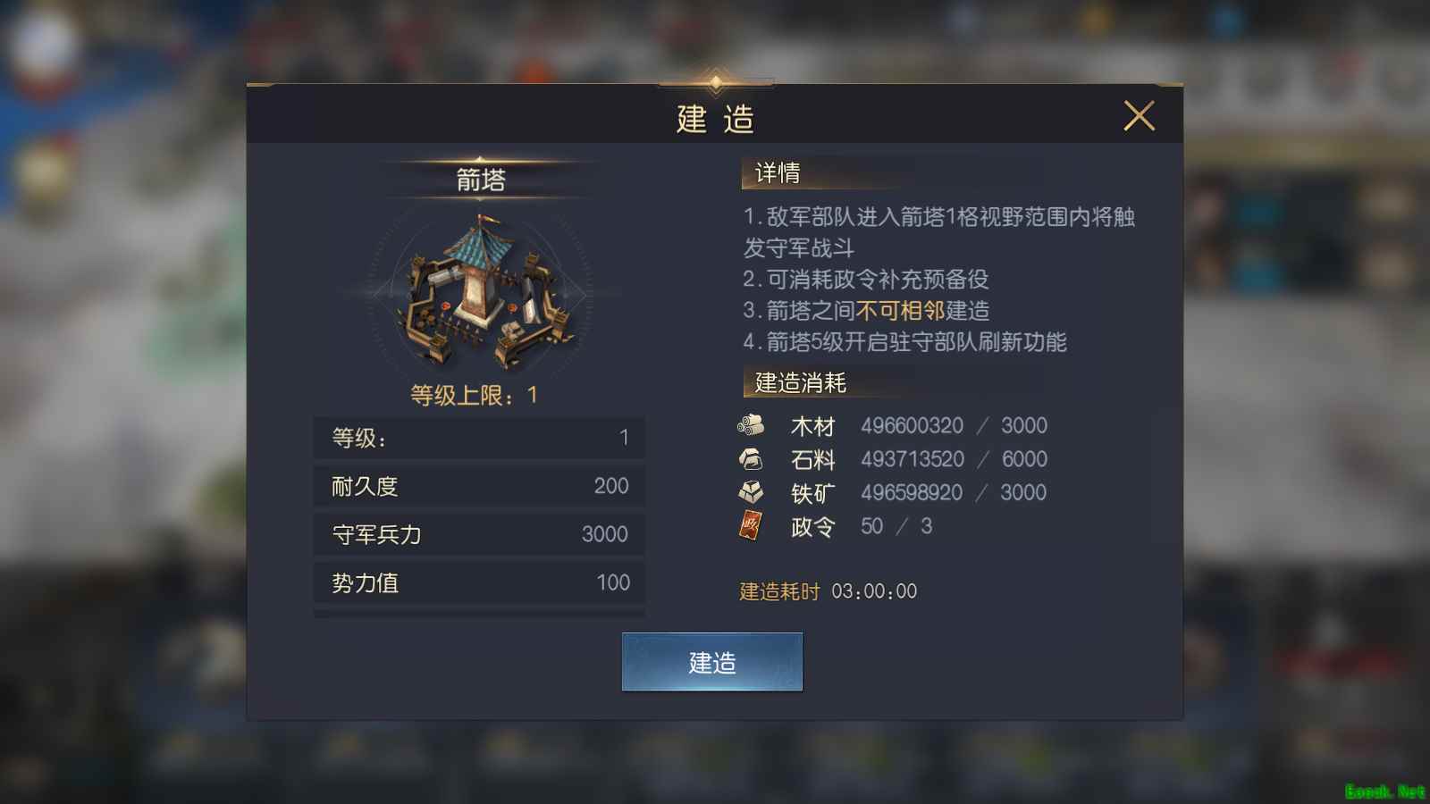 木材、石料、铁矿是游戏中最核心的三种建筑资源,可以用于进行城市建设和部队器械升级,通过对不同功能的建筑进行建造和升级,提升各种资源的产出,同时解锁一些新的建筑,使用新的功能。