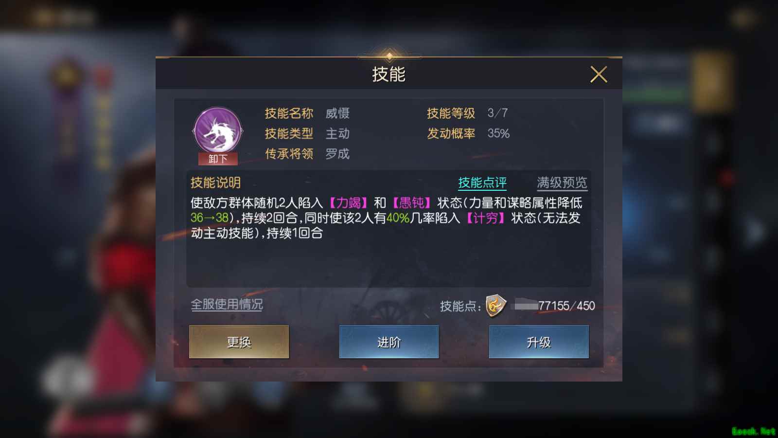 技能点可以升级将领的技能,每个将领技能升到满级后都会有质的提升。技能点可以通过将领战斗升级获得,也可以将多余将领进行转换获得,还可以直接将不需要的将领或相同的将领转化为技能点。