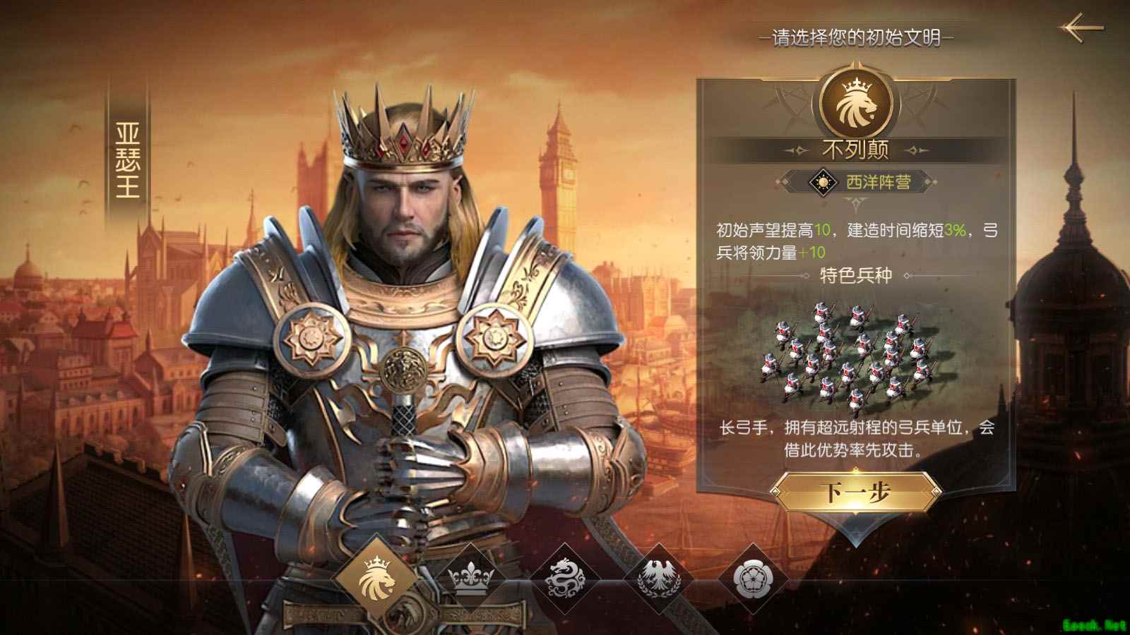 带有建筑加成与初始声望的文明,可为弓兵将领增加基础力量,特色兵种优势在于速度,每回合都有几率获得【先攻】,适合主打先手控制,组建输出链的君主。