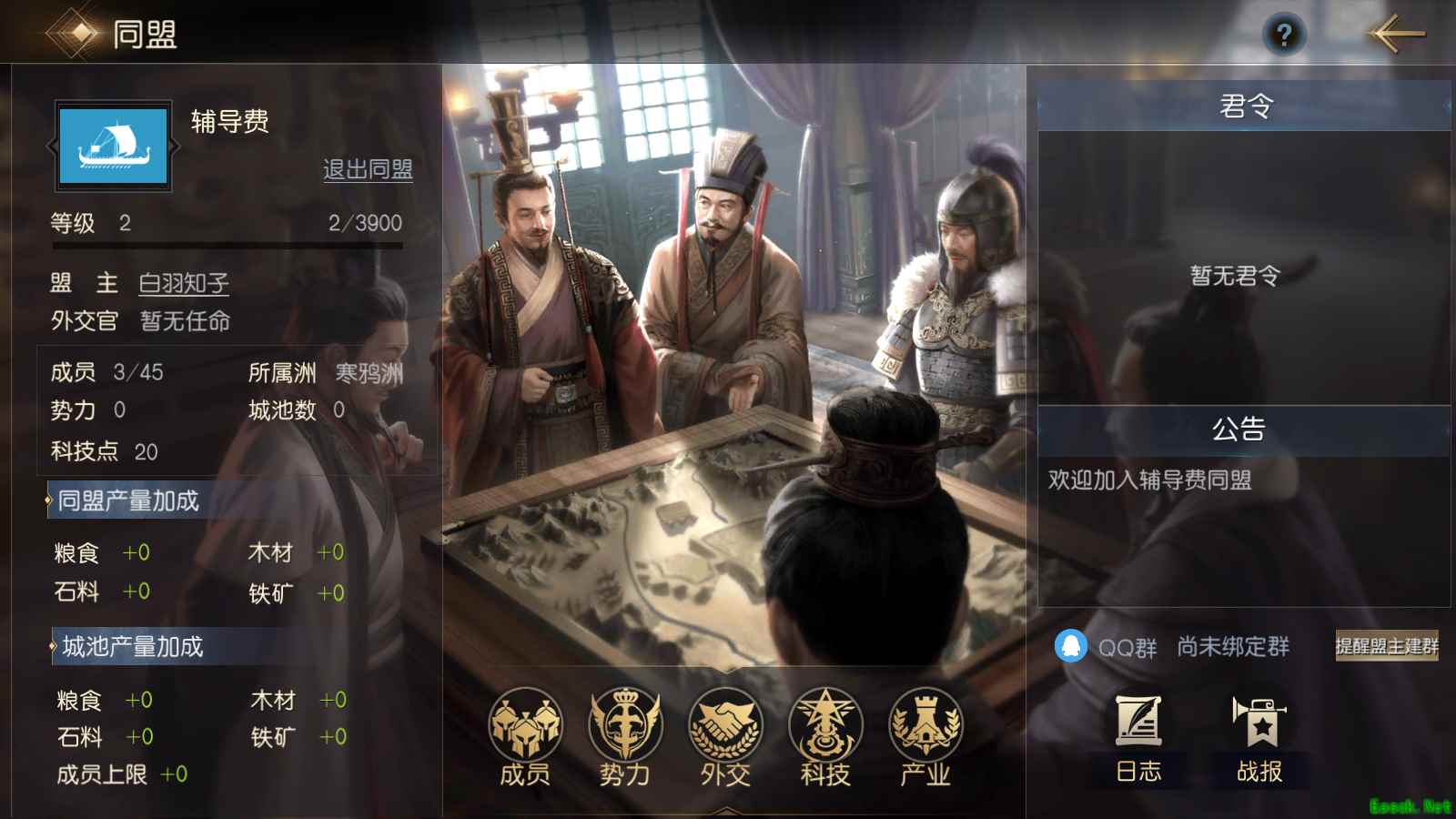 【战备后勤】科技及其对应的策略发动之后,能够在一定时间内降低同盟成员征兵的消耗,这在游戏后期盟战的过程中是十分重要的,降低了征兵消耗,就相当于变相提高了我们部队可以参战的次数,缩短了休养生息的时间,就能够让同盟在盟战中占据优势。